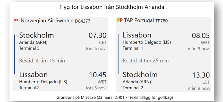 golf package only 605 €